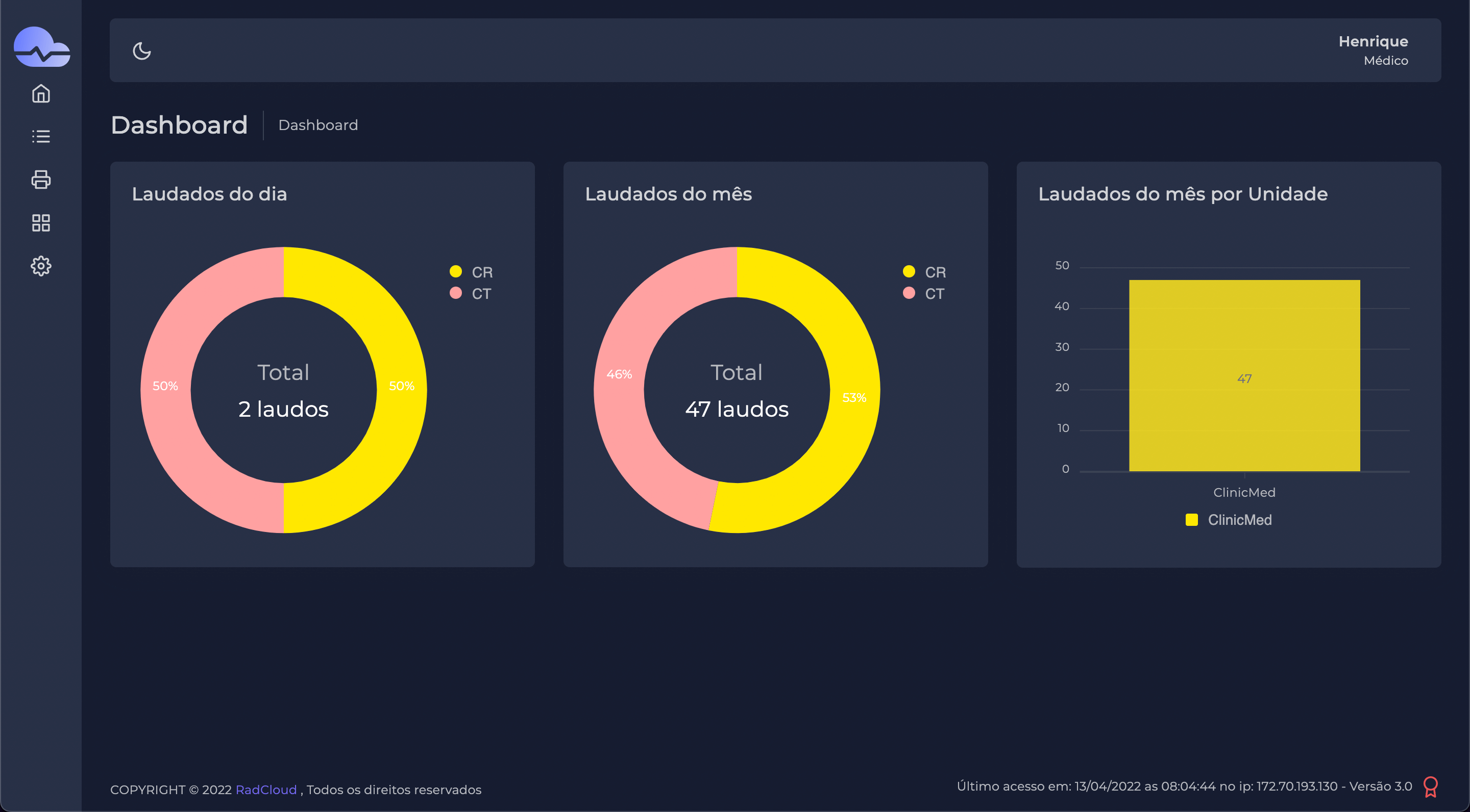 Dashboard com gráficos dinâmicos apresentados de acordo com o perfil do usuário.